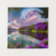 Purple flowers Moon and lake reflection Tapestry