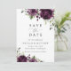 Invite friends and family in style and set the tone for your special day with this charming save the date card. Design features plum purple watercolor flowers and greenery on white background.