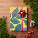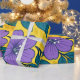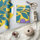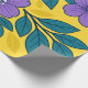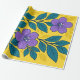 Purple Flowers & Teal Leaves on Yellow Background Wrapping Paper