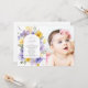 Invite friends and family in style and set the tone for your special day with this elegant baptism invitation. Design features purple and yellow watercolor flowers and greenery on white background.