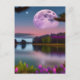 Purple and orange autumn foliage Lakeside under a Harvest Moon