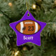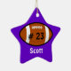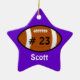Custom football Christmas ornament done in a purple star shape ornament, with name in white and jersey number in black on a football icon. Personalise the name or text to suit your needs. Makes a nice ornament for kids or your star football player.