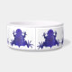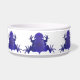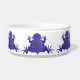 Purple and white frogs design pet bowls. Personalised dog food bowl for purple frog fans.