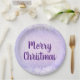 Pretty Purple frost Merry Christmas design Paper Plates.
