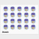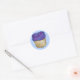 Stickers feature an original watercolor illustration of a purple frosted cupcake on a blue background.