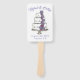 Just personalise with your wedding information! Paper hand fan features an original marker illustration of a tiered wedding cake topped with purple frosting flowers.