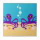 Purple Fun Groovy Octopus Cartoon Art Ceramic Tile
