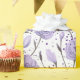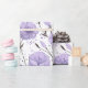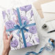 Wrapping Paper with textured purple abstract flowers and brown green leaves, pastel coloured spring or summer softness romantic floral pattern. Botanical digital oil painting. Floral blossom botany Wrapping Paper. Purple Garden Collection.