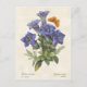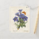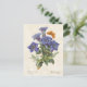 Postcard with a digitally cleaned and enhanced vintage botanical image of gentian, a flowering plant with purple, trumpet shaped blooms on a light gold parchment background. Illustrated by renowned Belgian painter and botanist Pierre-Joseph Redouté in 1833. Manuscript captions reproduced in original placement and similar fonts.