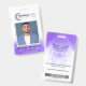 Stylish employee ID badge featuring a purple geometric design, photo placement, barcode, and company logo area. Personalise with employee name, job title, and contact info. Ideal for offices, startups, remote teams, and professional work environments. Clean, modern, and easy to customise.