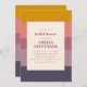 This bold and stylish bridal shower invitation features stacked colorblock stripes in mustard, coral, mauve, blush, and plum with classic serif and modern sans-serif fonts. The centre panel highlights the bride's name and event details, making it perfect for a trendy, retro-themed celebration. Easily personalise the text for a unique and colourful shower.