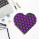 Heart shaped, spiral bound notebook for writing or sketching whose front and back covers feature the photo image of a little, purple Cranesbill Geranium flower on a black background and printed in a repeating pattern. A fun, floral design! Select your notebook options.