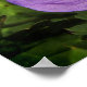 This poster features magenta purple Cranesbill Geranium flowers, each with a lovely golden yellow centre, and green foliage.