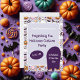 Halloween ghosts, jack-o-lanterns, bats and candy on a purple background to frame your party info. RSVP info on the back.