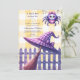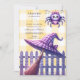 Celebrate your little boo with this charming Halloween baby shower design! Featuring a cosy gingham background, a purple witch hat, wooden broom, and a bow-tied spider hanging above a picket fence, this invitation blends spooky with sweet in all the right ways. Perfect for a whimsical autumn party full of warmth and magic.