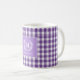 Custom Monogram Mug, Purple Gingham Pattern Design - 6 colours.