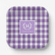 Custom Monogram Paper Plates Purple Gingham Pattern Design - 6 colours.