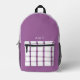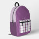 Purple Gingham Plaid Personalised Name Initials Printed Backpack