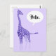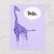 This is a fun way to say hello. Pictured on these postcards is my watercolor painting of a giraffe, done in purple and lavender. The giraffe is looking in the same direction that its tail is pointing. The background is pale lavender and there is a white speech bubble for your greeting, or you can use the word, Hello, which is already there. Thank you for shopping CherylsArt on Zazzle.