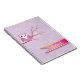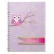 Girly Owl Cloud patterned Notebook for that Girly girl in your life! cute swirly clouds in the background with a pink owl sitting on a tree branch with pink cherry blossom flowers. I pink and gold ribbon nameplate for your chosen text. very trendy!
