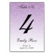 This trendy glitter table number card has faux glitter on the front and back along with the table number and personalisation. Use the template form to add your information. The "Customise Further" feature can be used to change the font and the text layout.