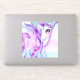 Unicorn stickers featuring a purple glam peek-a-boo white unicorn with purple mane behind a purple zipper