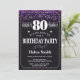 Purple Glitter 80th Birthday Invitation. White Typography. Black and White Chalkboard Background. Adult Birthday. Male Men or Women Birthday. Kids Boy or Girl Lady Teen Teenage Bday Invite. 13th 15th 16th 18th 20th 21st 30th 40th 50th 60th 70th 80th 90th 100th. Any Age. For further customisation, please click the "Customise it" button and use our design tool to modify this template.