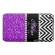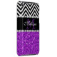 GIRLY MODERN PURPLE GLITTER (PRINTED EFFECT) WITH BLACK AND WHITE CHEVRON PATTERN, MONOGRAMMED WITH YOUR NAME, YOUR INITIAL OR MONOGRAM ON A BLACK STRIPE OR BAND WITH A BORDER OF PRINTED WHITE DIAMONDS. TRENDY, CHIC, COOL CUTE DESIGN FOR HER, THE TRENDSETTER, THE FASHIONISTA