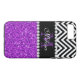 PURPLE GLITTER BLACK CHEVRON MONOGRAMMED Case-Mate iPhone CASE