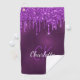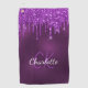 Purple glitter drips monogram initials name golf towel