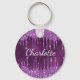 A deep purple background decorated with faux glitter drips, paint dripping look. The purple background colour is uneven. Personalise and add your name and monogram initials. Purple and white coloured letters. The name is written with a modern hand lettered style script.