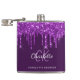 A deep purple background. Decorted with faux glitter drips, paint dripping look. Personalise and add a name, monogram initials and full name. The first name is written with a modern hand lettered style script.