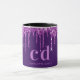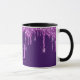 A girly and trendy monogrammed mug. A chic deep purple background decorated with faux glitter drips, paint dripping look. Personalise and add a name and monogram initials. Purple coloured letters.