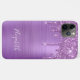 Elegant and girly monogram phone case featuring purple faux glitter dripping down a purple faux metallic foil background. Add your name in a stylish white script.