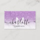 Purple glitter ombre marble monogram and name makeup logo with purple glitter on an luxury and elegant white marble background with a chic script brush font. Add your logo and social media.