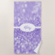 Personalise a unique beach gift with a Purple Glitter Personalised Beach Towel. Towel design features a purple glitter background and oval banner where you can add your name and monogram for personalisation. Additional gift items available with this design as well. Please contact me directly if you need assistance with personalising this item. Glitter is artistically rendered and final product will not contain actual glitter.