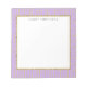 Features a gold bordered frame, against a purple and gold glitter pattern background. Personalise the notepad with your own name or text.