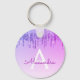 Purple Modern Ombre Faux Dripping Glitter and Sparkle Elegant Keychain. These Keychains can be customized to include your initial and first name and are a perfect anniversary, wedding, bridal shower, bachelorette party or birthday party favor.