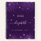 Deep purple background, white text. Decorated with faux glitter dust. Personalise and add a year, your first name and a title. The name is written with a modern hand lettered style script with swashes.