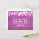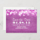 Vintage yet modern purple save the date postcard with faux glitter foil / confetti background and shimmering string lights. Please note that this design does not use any physical glitter it will be printed the way you see it on your computer screen.