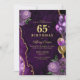 Elegant purple gold Floral Agate 65th Birthday party Invitation. 65th birthday invite features purple and gold glitter balloons and delicate purple lilac rose florals with gold speckles.