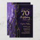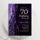 Purple and gold agate 70th birthday party invitation. Elegant modern design featuring watercolor agate marble geode background, faux glitter gold and typography script font. Trendy invite card perfect for a stylish women's bday celebration. Printed Zazzle invitations or instant download digital printable template.