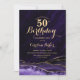 Purple and gold agate 50th birthday party invitation. Elegant modern design featuring watercolor agate marble geode background, faux glitter gold and typography script font. Trendy invite card perfect for a stylish women's bday celebration. Printed Zazzle invitations or instant download digital printable template.