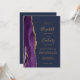 Purple Gold Agate Navy Blue QR Code Wedding Invitation