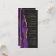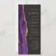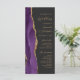 The left-hand edge of this elegant modern wedding program features a purple watercolor agate border trimmed with faux gold glitter. The customisable text combines gold-coloured calligraphy script and sans serif fonts on a dark background.