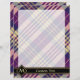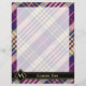 Purple, golden yellow and blue tartan design. Seamless pattern. Custom text and monogram.