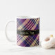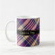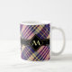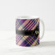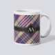 Purple, golden yellow and blue tartan design. Seamless pattern. Custom text and monogram.