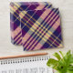 Purple, golden yellow and blue tartan design. Seamless pattern.