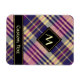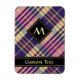 Purple, golden yellow and blue tartan design. Seamless pattern. Custom text and monogram.
