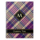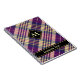 Purple, golden yellow and blue tartan design. Seamless pattern. Custom text and monogram.